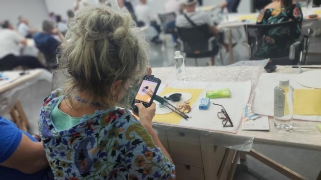 在上海市群眾藝術(shù)館,近60名波蘭團(tuán)隊游客跟隨書法指導(dǎo)老師了解中國“文房四寶”的制作方法,學(xué)習(xí)用毛筆書寫漢字,還參觀了最新攝影展及非遺市集,了解上海各級文化館服務(wù)內(nèi)容、工作職責(zé)。