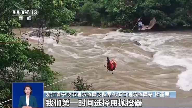 前段時(shí)間,受強(qiáng)降雨影響,浙江省寧波市奉化區(qū)溪口鎮(zhèn)附近河水水位暴漲。在升綱村附近河岸邊露營(yíng)過(guò)夜的兩人被水圍困。