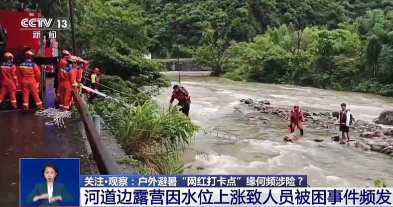 浙江寧波市消防救援支隊(duì)余盈:游客在水邊玩耍,對(duì)上游山洪的下降往往是聽(tīng)不清、看不見(jiàn)的。提醒大家汛期不要在河道邊或者是干涸的河床上搭建營(yíng)地,應(yīng)該盡量選擇地勢(shì)高、地面平坦堅(jiān)固、背風(fēng)的地方扎營(yíng)。