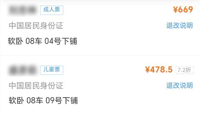 兒童優(yōu)惠票軟臥票價(jià)=軟座票價(jià)×50%+臥鋪票價(jià)(軟)×100%