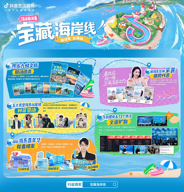 當(dāng)海浪與城市共鳴,當(dāng)流量與體驗(yàn)共振,抖音生活服務(wù)聯(lián)合四省九城打造了一場「寶藏海岸線」文旅盛宴,交出了一份令人矚目的答卷。從政府到商家,從明星到達(dá)人,從線上種草到線下狂歡,這場以“海”為核的超級IP,不僅激活了海岸經(jīng)濟(jì)的新動(dòng)能,更重新定義了夏季海濱生活的無限可能。