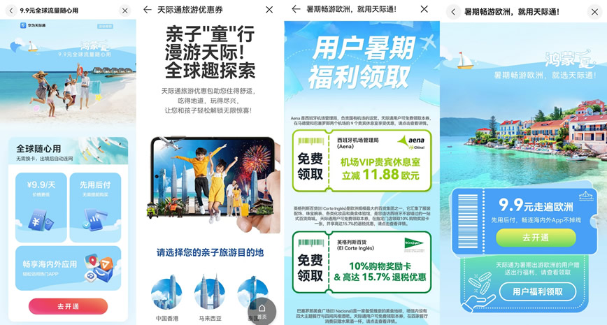 今年夏天,天際通為計劃出境游的用戶特別推出了“全球隨心用”活動,境外流量9.9元包天,每天有5GB高速流量,活動覆蓋港澳、新馬泰、日韓、歐洲、澳大利亞、美國(本土地區(qū))等50個國家地區(qū),讓境外出行更方便,更劃算。天際通還為出行亞洲、歐洲的用戶提供了多地旅游優(yōu)惠權益,涵蓋機票酒店、旅游景點、吃喝玩樂等各個方面,想必這也是很多小紅書用戶在#鴻一點更夏天#中瘋狂安利的原因之一。