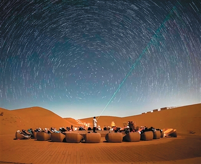 據(jù)介紹,今年暑期夜游活動(dòng)集中展現(xiàn)了沙坡頭旅游的創(chuàng)新探索。在文旅融合上,“音樂(lè)+旅游”模式持續(xù)創(chuàng)新,“青春漠漠搭”系列音樂(lè)節(jié)、四熹丸子演唱會(huì)等成為新看點(diǎn),形成獨(dú)特的“沙漠音樂(lè)之旅”主題線路,特別受年輕游客喜愛(ài)。開發(fā)“浪漫+旅游”融合產(chǎn)品,星星酒店借助沙漠優(yōu)質(zhì)觀星環(huán)境,為游客營(yíng)造沉浸式觀星的浪漫。酒店的觀星活動(dòng)分為室內(nèi)星空講座和室外裸眼觀星。此外,酒店還建有專業(yè)的陣列式天文觀測(cè)站和圓頂天文臺(tái)。英國(guó)游客亞當(dāng)說(shuō):“這里是最像火星的浪漫之地。”