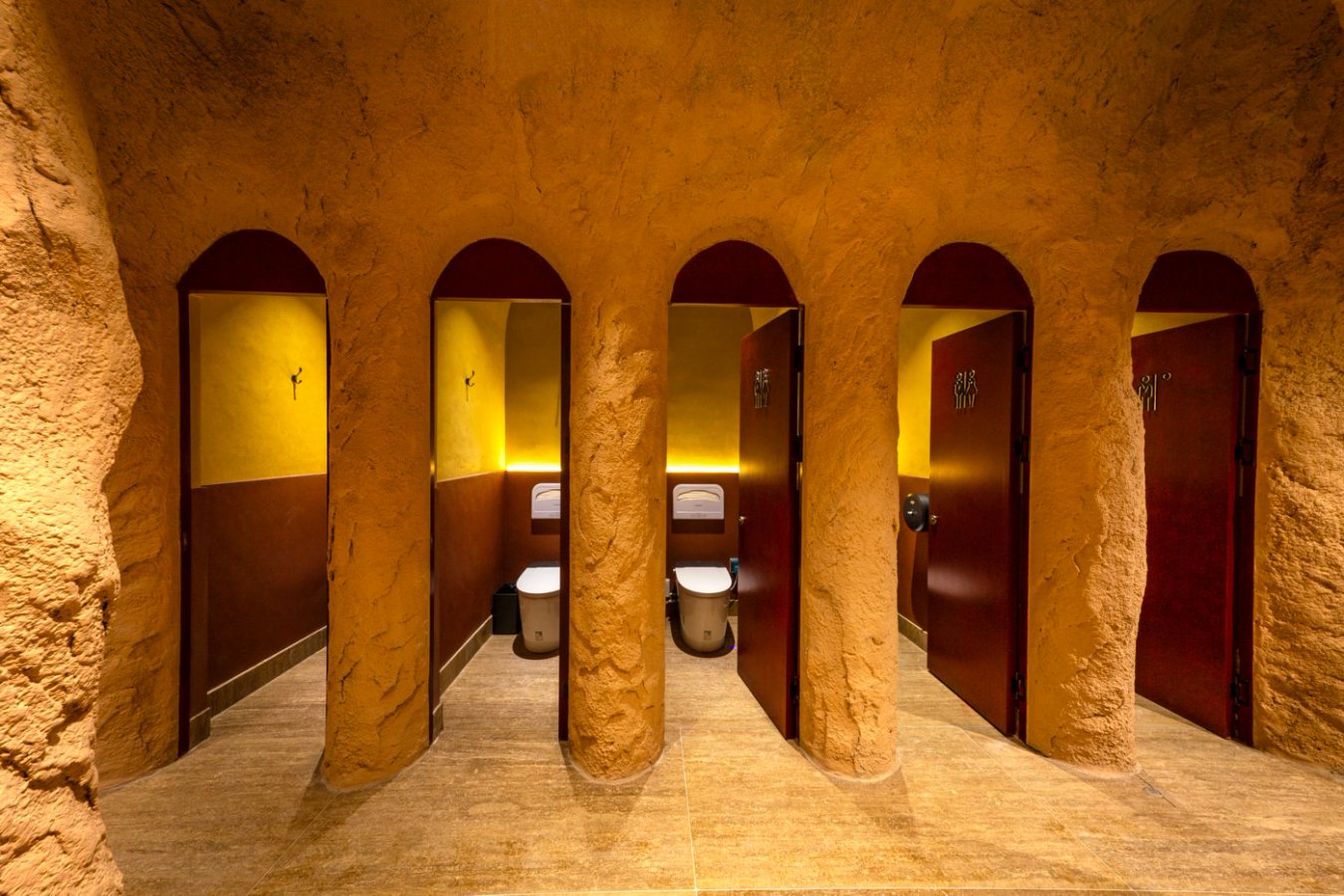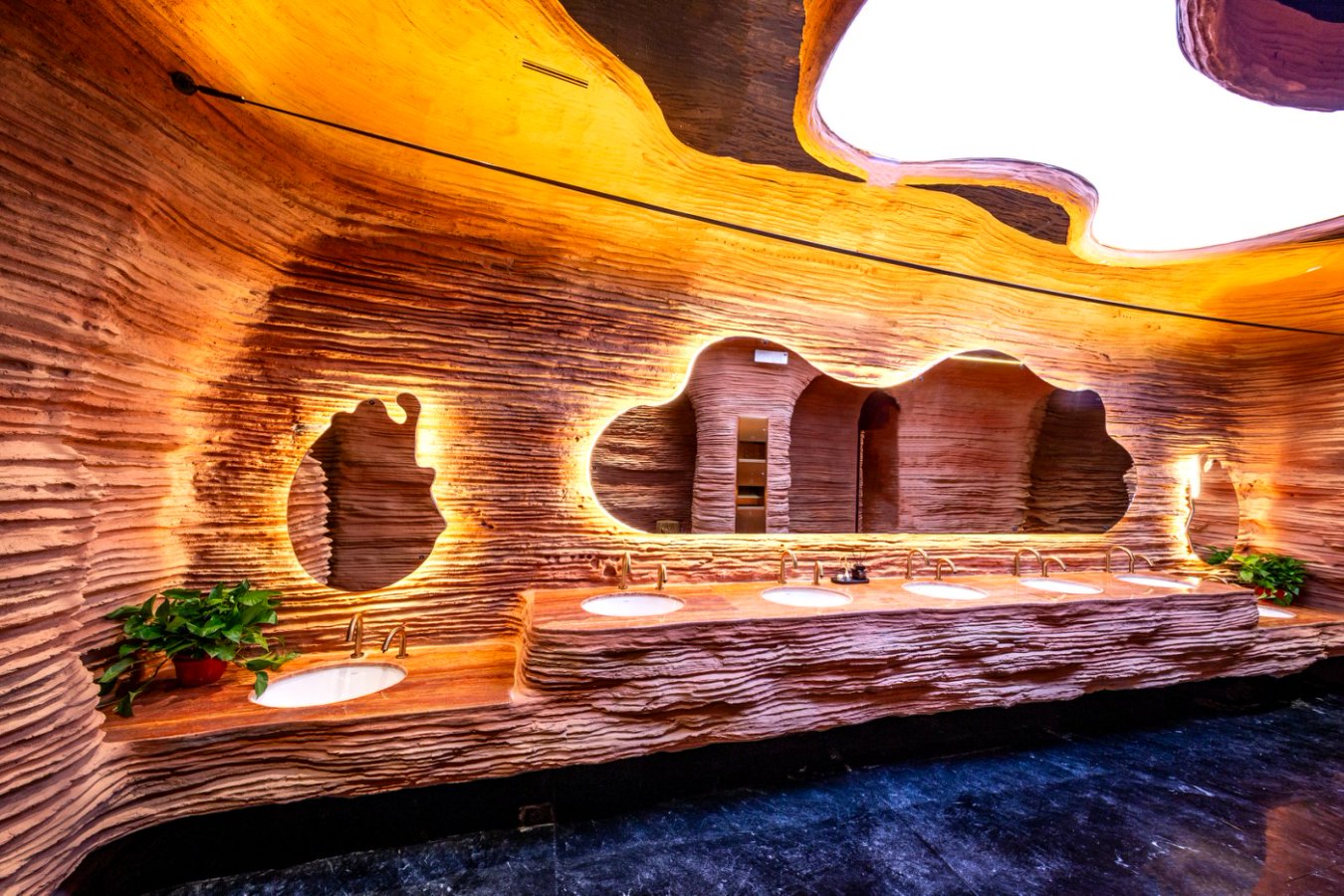 據(jù)了解,該項目對敦煌夜市“八景樓”進行功能再造,融合敦煌文化基因:一層以“莫高至善”為主題,二層則呈現(xiàn)“雅丹秘境”,營造雄渾奇幻的空間意境。步入其中,便能感受到敦煌文化與九牧衛(wèi)浴產(chǎn)品的完美交融,一位來自北京的游客表示:“這和我印象中的公廁完全不一樣,升級后的超白玻幕墻與毗鄰的沙州樓形成震撼的 ‘古今對話’,夜幕降臨時,燈光與幕墻交相輝映,宛如一座小型藝術(shù)館。”