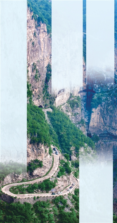 錫崖溝掛壁公路呈“之”字形走勢,全長7.5公里,高差500米,彎道接著一個(gè)彎道、懸崖連著一個(gè)懸崖。