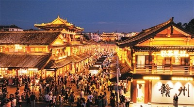 今年夏季,江西省贛州市推動消費場景創(chuàng)新,借助系列賽事活動打造“票根經(jīng)濟(jì)”,吸引八方游客前來旅游觀光,帶動消費市場持續(xù)火熱。圖為贛州市章貢區(qū)江南宋城歷史文化街區(qū)。