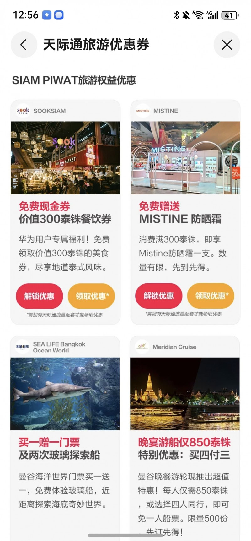 華為手機(jī)用戶開啟天際通流量后,可以在泰國、馬來西亞、越南、印尼免費(fèi)領(lǐng)取Grab游客優(yōu)惠禮包,憑Grab優(yōu)惠禮包即可享受精選服務(wù),包括機(jī)場接送、打車折扣、外賣餐飲、超市購物等出游場景,輕松暢游東南亞。還可領(lǐng)取Klook旅游權(quán)益優(yōu)惠,無論您是在中國香港&澳門暢游看夜景,還是在日本觀賞和風(fēng)之美,在韓國感受韓風(fēng)潮流、越南邂逅燈火古鎮(zhèn),即可享受景點(diǎn)購票全單95折優(yōu)惠。在活動頁還可領(lǐng)取朗廷卓逸會全球酒店住宿禮遇及專屬優(yōu)惠房價(jià),共覆蓋全球超過30家知名酒店。