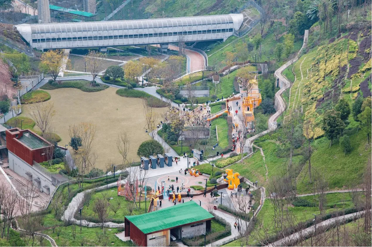 依山就勢(shì),渝中區(qū)推進(jìn)21萬(wàn)平方米坡坎崖由“禿斑”變“綠毯”、由“荒地”變“游園”、由“治理點(diǎn)”變“打卡點(diǎn)”。實(shí)現(xiàn)了鵝嶺—虎頭巖10.8公里山脊線綠蔭如蓋,長(zhǎng)江、嘉陵江11.5公里濱水綠帶織綠成廊。渝中在紅巖公園充分利用“漏斗”地形,擋墻加固崖壁緩坡,生態(tài)復(fù)綠4.35萬(wàn)平方米,中間平坦區(qū)域開辟為兒童樂園,入選全國(guó)兒童友好空間典型案例。
