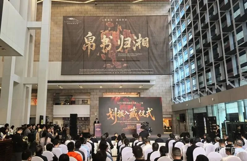 長沙子彈庫戰(zhàn)國帛書第二、三卷劃撥入藏儀式在湖南省博物館舉行(央廣網記者黃珂嵐 攝)