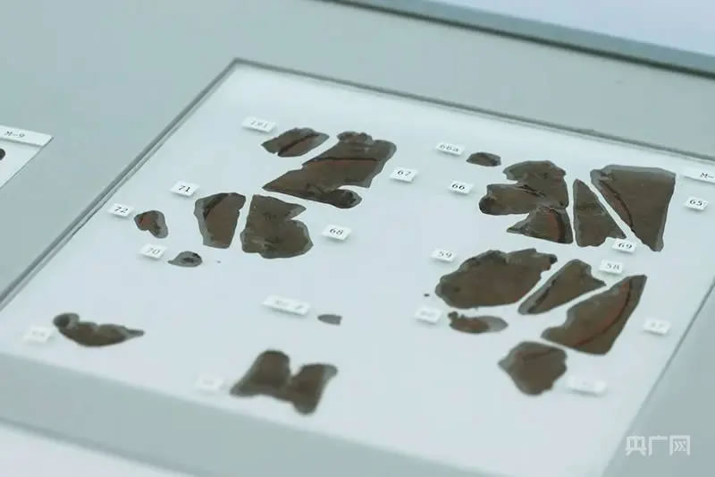 部分長沙子彈庫戰(zhàn)國帛書(央廣網記者黃珂嵐 攝)