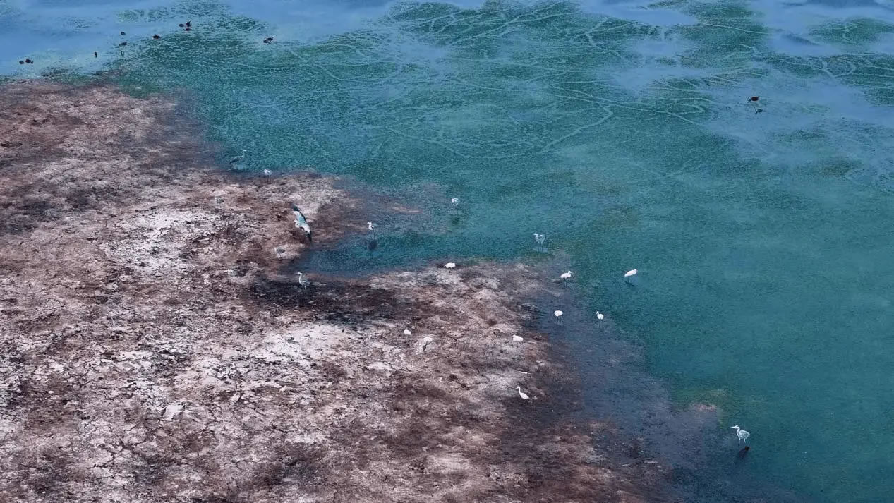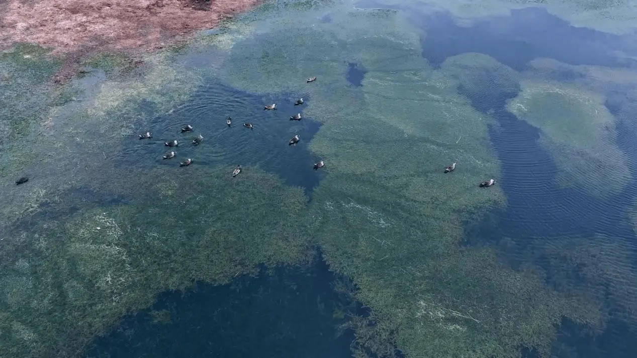 陽光灑落時(shí),湖水清澈見底,魚兒在水中自在游弋,與岸邊景致構(gòu)成絕佳畫面。此外,黑翅長腳鷸也不時(shí)現(xiàn)身灘涂,為這幅生態(tài)圖景再添一抹靈動(dòng)色彩。