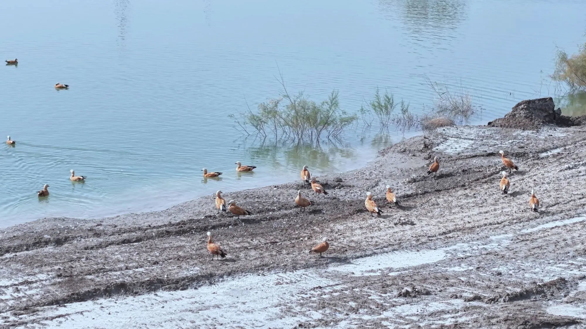 深秋時節(jié),新疆輪臺縣草湖鄉(xiāng)可可橋村迎來大批遷徙候鳥。廣袤的戈壁荒灘上,大量赤麻鴨、灰雁在此集結(jié)棲息,甚為壯觀。