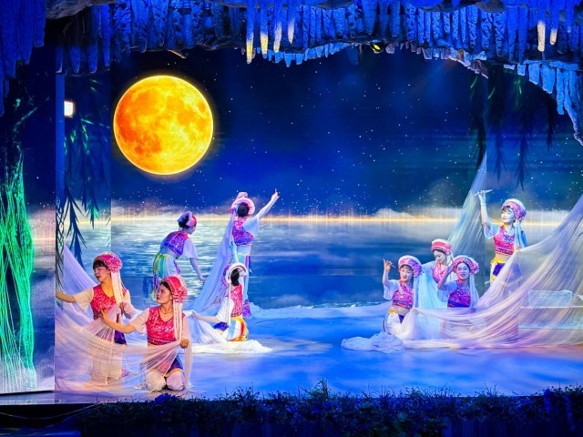 島上的龍宮溶洞是一處天然形成的水下溶洞,全長(zhǎng)約1300米,可以說(shuō)是全國(guó)僅存在水島上的溶洞。洞內(nèi)石柱、石筍、石幔等喀斯特地貌景觀發(fā)育完整。特別值得一提的是,洞內(nèi)設(shè)有水下劇場(chǎng),每天上演反映白族漁家生活的歌舞表演,成為游客了解當(dāng)?shù)匚幕闹匾翱凇?/p>