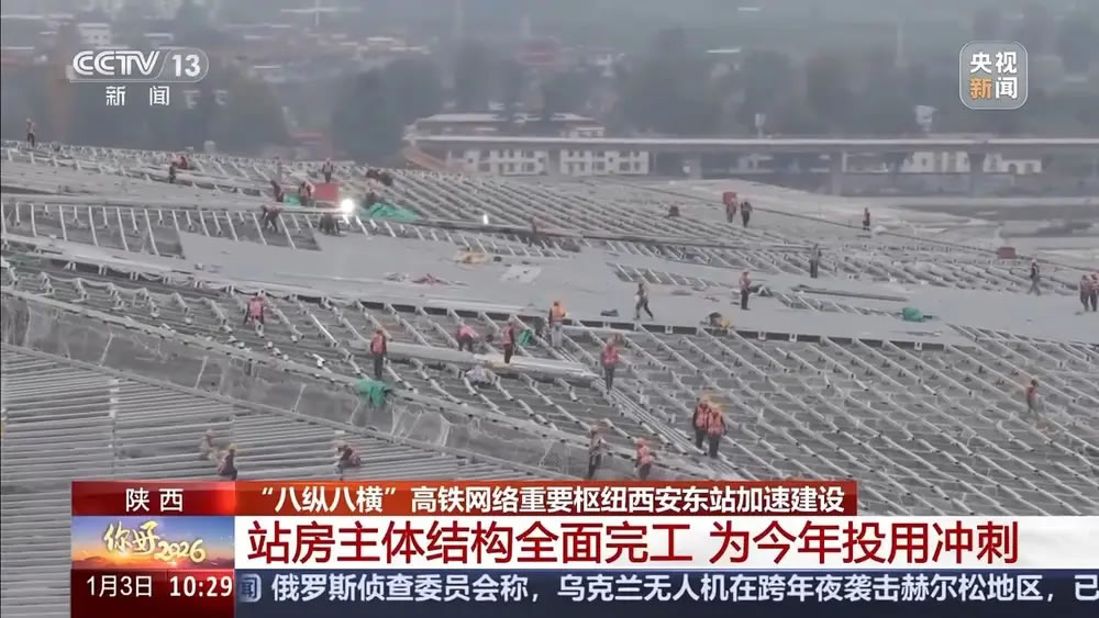 元旦假期,在各地重大工程的建設(shè)現(xiàn)場,許多建設(shè)者們?nèi)詧允貚徫。作為國?ldquo;八縱八橫”高鐵網(wǎng)絡(luò)中的重要樞紐,陜西西安東站正在加速建設(shè)。目前,這座西北地區(qū)最大的高鐵站房主體結(jié)構(gòu)全面完工,這個元旦假期,工程建設(shè)依然在全速推進。