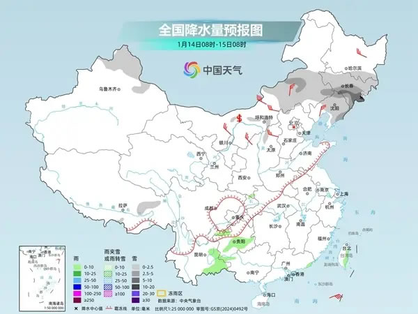 中國天氣網訊 今明兩天(1月14日至15日),全國大部繼續(xù)維持雨雪稀少的格局,后天起降水將呈現(xiàn)增多趨勢。目前,冷空氣實力不強、位置偏北,主要影響東北地區(qū)等地,不過17日起,新一股強冷空氣將給我國大部地區(qū)帶來明顯降溫,屆時也會扭轉近期偏暖的格局。