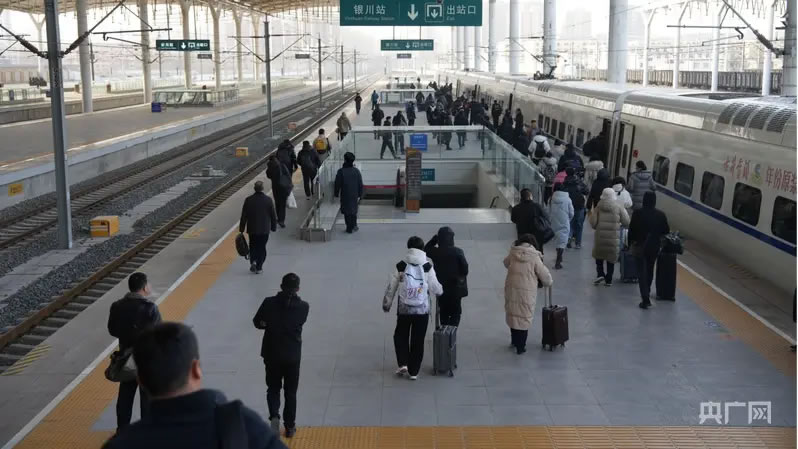 乘客們行色匆匆地走向站臺(tái)(央廣網(wǎng)發(fā) 銀川火車站供圖)