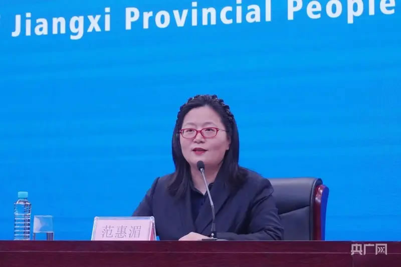 范惠湄介紹江西商旅文體健融合的相關(guān)情況(央廣網(wǎng)見習記者 葉昱汝 攝)