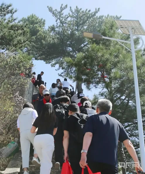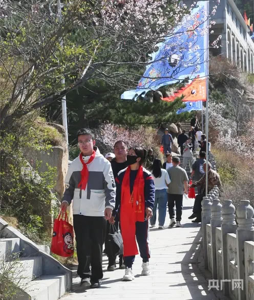 沿著青石步道拾級而上,步步皆景、處處入畫;ㄖ﹄S風(fēng)輕舒,花瓣簌簌飄落,鋪就一條條浪漫花徑;林間鳥鳴清脆,與游客歡聲笑語交織,匯成動聽的春日交響曲;山間云影流轉(zhuǎn),陽光透過花枝灑下斑駁光影,一步一景皆藏詩意。游客們或漫步花海深呼吸,沉醉自然野趣;或舉手機(jī)相機(jī)駐足打卡,定格春日盛景;或結(jié)伴邊走邊聊,賞雄奇風(fēng)光、品道教文化,盡享踏青愜意。
