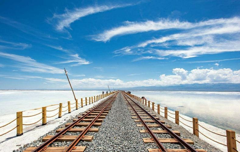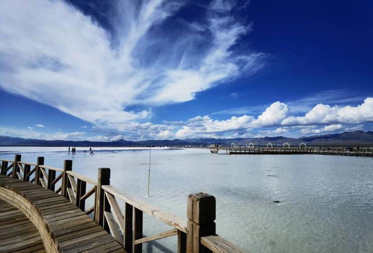茶卡鹽湖景區(qū)擁有國內(nèi)首個(gè)鹽湖生態(tài)環(huán)保型觀光游船,游客可以乘小火車到達(dá)鹽湖碼頭站后乘游艇,去領(lǐng)略現(xiàn)代工業(yè)采鹽的風(fēng)景。