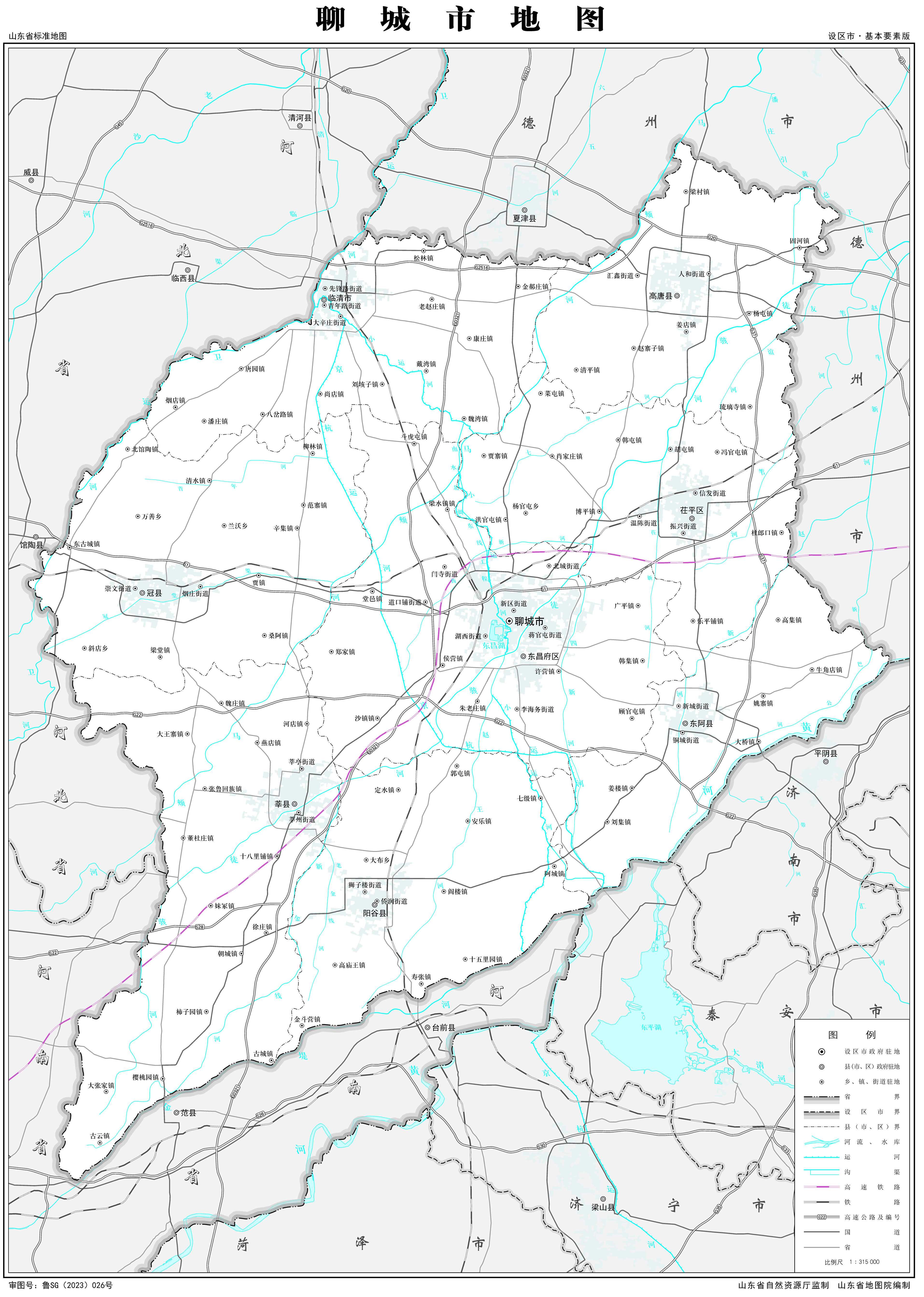 聊城市轄2個市轄區(qū),5個縣,代管1個省轄市: