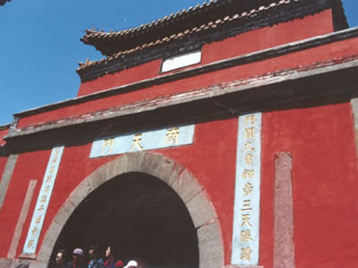 碧霞祠位于岱頂,是泰山女神碧霞元君祠宇,始建于宋大中祥符元年(公元1008年)。祠以山門(mén)為界,分內(nèi)外兩院,內(nèi)院正殿供奉碧霞元君銅像,銅瓦覆頂,東西配殿鐵瓦覆蓋。