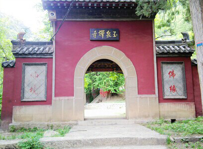 玉泉寺位于岱頂北,直線距離為6.3公里,山徑20余公里。有公路與泰城相通。寺東南有蓮花峰、香爐峰、周明堂故址、天井灣;西為摩天嶺;南臨賣(mài)飯棚子;北依返倒山、長(zhǎng)城嶺。玉泉寺由北魏僧意所創(chuàng)建,金代又有僧善寧重建,元代僧普謹(jǐn)增建七佛閣,后屢興屢廢。古時(shí)山民曾在山谷內(nèi)拾到羅漢像,因名佛峪、佛谷。又因南有谷山,東有玉泉,又名谷山寺、谷山玉泉寺,俗名佛爺寺。今遺址內(nèi)存碑碣10塊,周?chē)星旯爬鯓?shù)20余株。院內(nèi)原有大雄寶殿,中祀釋迦,側(cè)立十八羅漢,四周有壁畫(huà)。正殿祀唐初政治家魏征等!拔幕蟾锩敝袣В駷橛袢戮皡^(qū)立新林場(chǎng)駐地。