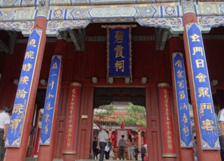 泰山龍袍:在岱廟東御座內(nèi)陳列著一件泰山龍袍,龍袍尺寸大,泰山龍袍身高2.2米,他的袖子長(zhǎng)達(dá)4.4米,袖肥1.1米,下襟寬達(dá)2.3米。明黃色的緞面上用金線繡織了十團(tuán)龍,象征十全十美。它是清朝的乾隆皇帝進(jìn)獻(xiàn)給泰山神的。