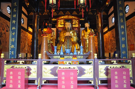 上海的城隍廟建筑宏偉,前后共三進(jìn)。第一進(jìn)供的是霍光;第二進(jìn)供的是秦裕伯;第三進(jìn)是城隍夫人。 |