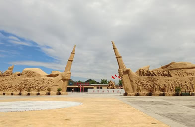 勝利大道全面反映抗戰(zhàn)時(shí)期八路軍戰(zhàn)士英勇抗敵,與日軍斗智斗勇,最終取得勝利的畫(huà)面。畫(huà)面包括:地道戰(zhàn)、地雷戰(zhàn)、小兵張嘎、雞毛信、鐵道游擊隊(duì)、雁翎隊(duì)、狼牙山五壯士、白求恩、聶耳(義勇軍進(jìn)行曲)、黨的兒女、歡慶勝利、支援前線、雙槍李向陽(yáng)、百團(tuán)大戰(zhàn)、送子參軍、消息樹(shù)、紅燈記等21 組雕塑。
