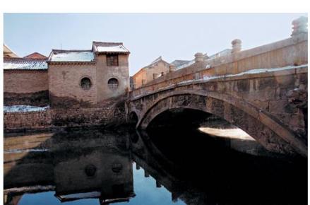 景德橋,俗稱西關(guān)大橋,中國(guó)著名古橋之一,橫跨在山西晉城市城區(qū)白水河上,連貫兩岸公路,因通沁水、陽(yáng)城一帶,一度稱沁陽(yáng)橋。創(chuàng)建于金大定二十九年(1189年)。清乾隆四十八年(1783年)改今名。橋用二十五道立券石并排砌成,橋面長(zhǎng)30米,券高3.7米,跨度16米,券寬6米,兩端各負(fù)一券,以分剪洪水沖擊面,減輕大橋的荷重力。橋面兩側(cè)石雕獸面、海馬、行龍、海水等紋圖案,券門(mén)上雕螭首,均精巧。