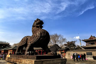 城隍廟是國務(wù)院重點文物保護單位,也是國內(nèi)保存最完整的城隍廟之一。占地面積6000平方米,始建于元至正二十二年(公元1362年),廟內(nèi)主殿建筑結(jié)構(gòu)精巧細致。主殿前 有玄鑒一座,高達25米,頗為壯觀,1999年世界歷史文化遺址保護基金會公布為全球最精美的古建筑之一,城隍廟是古代宗教文化中普遍崇祀的重要神之一,是護城佑民、主掌茗 籍之神。是古代“人神共治”思想的明確反映 。城隍廟前,有兩尊貔貅(pi xiu)威武地橫在門前的廣場上。這種據(jù)說只有嘴沒有屁眼的獸喻意“只進不出”,是發(fā)財?shù)娜皤F。在陽光下.鑄鐵的貔貅昂首挺胸,威風(fēng)凜凜,像一對忠誠的衛(wèi)士,日夜鎮(zhèn)守在古城。