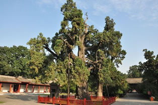黃帝手植柏是中國現(xiàn)存最古老的柏樹,1982年,英國林業(yè)專家羅皮爾考察了27個國家的柏樹后,認為唯有黃帝手植柏最粗壯、最古老,稱贊它是“世界柏樹之父”。1998年12月9日,“中華名樹公選養(yǎng)護委員會”將黃帝手植柏評為中華百棵名樹之首,世人譽之為“世界柏樹之冠”。