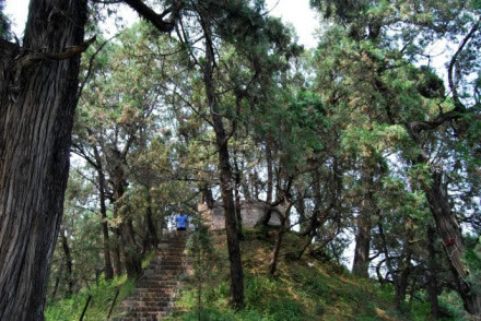 從“中華世紀柏”開始,一條步道通往山頂?shù)狞S帝陵。