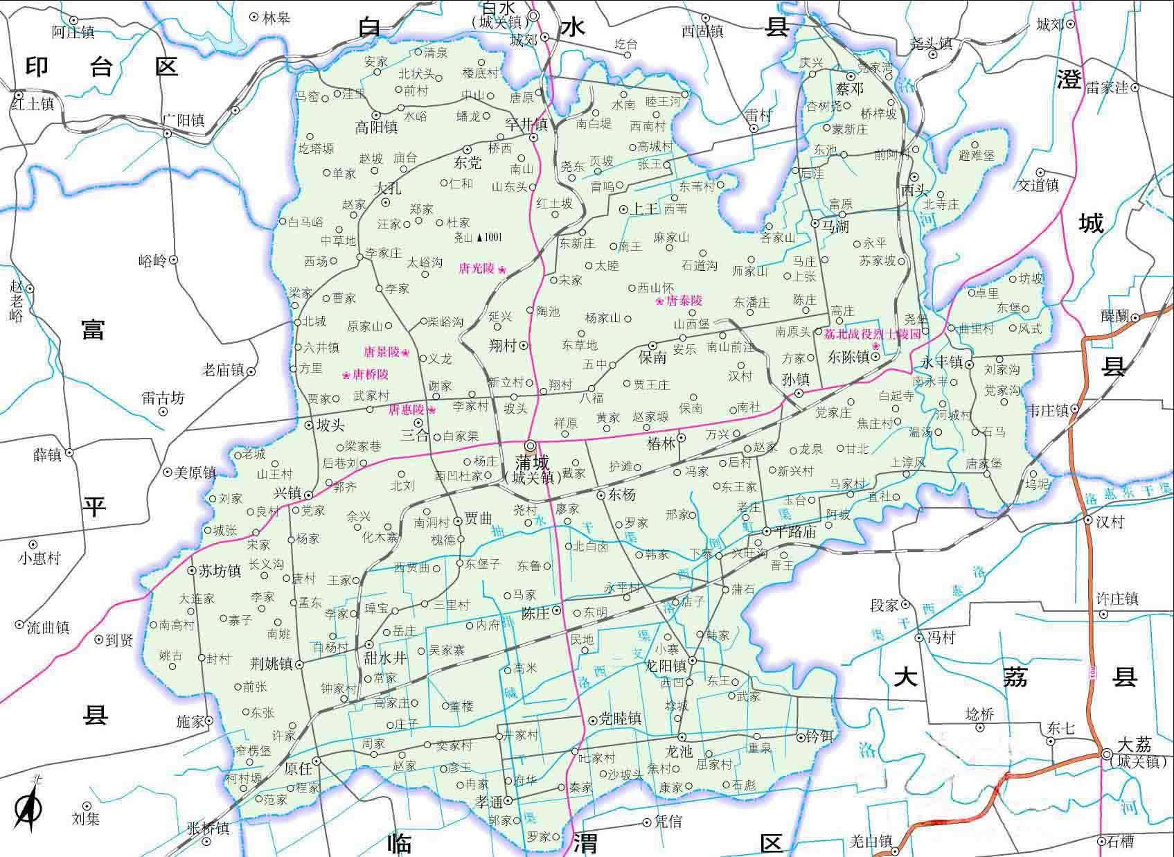 蒲城縣轄14個(gè)鎮(zhèn)、10個(gè)鄉(xiāng):