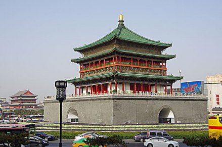 鐘鼓樓為鐘樓和鼓樓的合稱,均為中國古代的報(bào)時建筑。鐘樓是一座重檐三滴水式四角攢尖頂?shù)拈w樓式建筑,鼓樓為古代城市中設(shè)置大鼓的樓。用以擊鼓報(bào)警,或按時敲鼓報(bào)告時辰。鐘鼓樓合理的建筑結(jié)構(gòu)、華麗的建筑色彩、典雅的裝飾構(gòu)件,都具有濃郁、鮮明的民族文化特色,是西安標(biāo)志性建筑物,先后接待了周恩來、朱德等國家領(lǐng)導(dǎo)人和眾多中外著名人士。