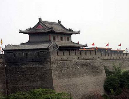 明洪武三年(1370年)至十一年(1378年),西安正式構(gòu)筑城墻。城墻用黃土分層夯筑。墻頂內(nèi)外沿筑女墻,外沿女墻有垛口5984個(gè),內(nèi)沿女墻無(wú)垛口。城墻外壁四周每隔120米有一馬面,共計(jì)98個(gè),上建墩樓。城四角各有一座角樓,其中城西南角為圓形。