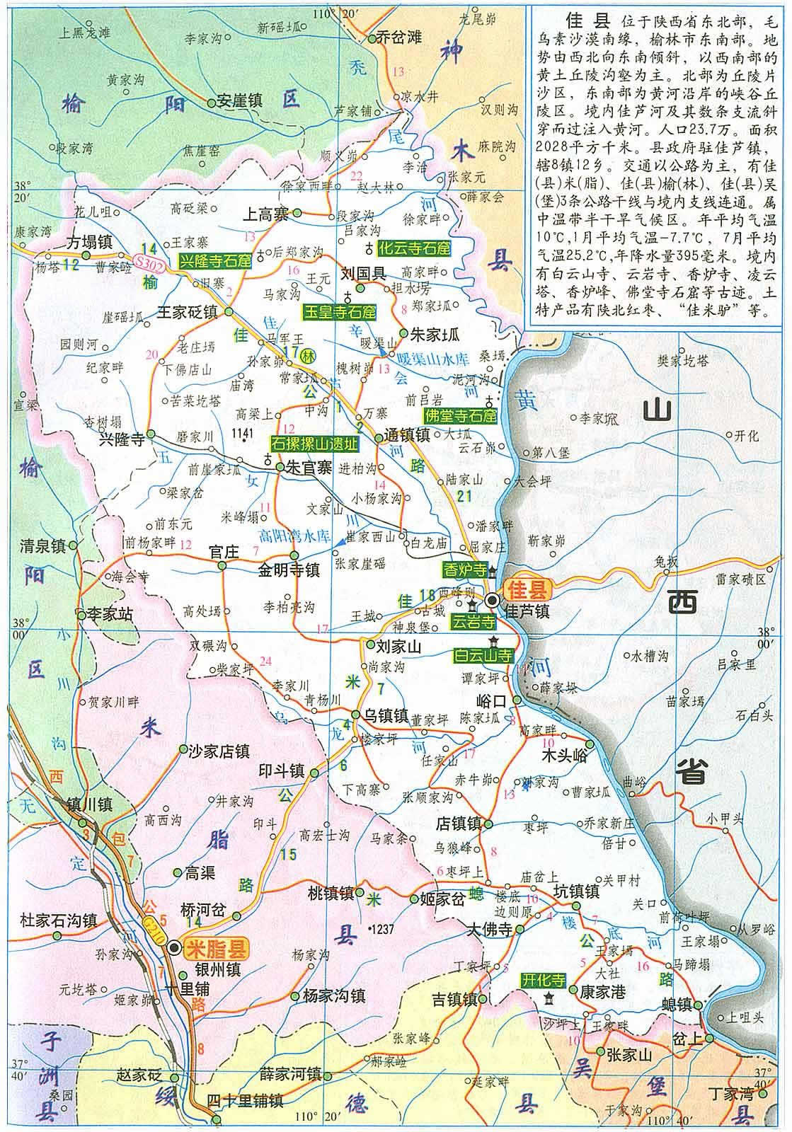 佳縣轄8個鎮(zhèn)、12個鄉(xiāng):