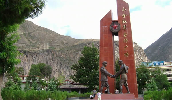 小金縣在中國革命史上具有光輝的一頁。1935年,中國工農(nóng)紅軍一方面軍在毛澤東、朱德、周恩來等老一輩無產(chǎn)階級革命家的帶領(lǐng)下,餐風(fēng)露宿,歷盡艱辛,翻越了長征途中的第一座大雪山—夾金山,與紅四方面軍在該縣達(dá)維鄉(xiāng)勝利會師;在美興鎮(zhèn)天主教堂召開了團(tuán)以上的干部參加的“同樂會”;在兩河口(今兩河鄉(xiāng))召開了具有重大歷史意義的中共中央政治局?jǐn)U大會議。勤勞勇敢的小金人民節(jié)衣縮食支援紅軍,一千多名優(yōu)秀兒女參加了紅軍,為長征和中國革命勝利作出了積極貢獻(xiàn)。今年5月,由國務(wù)院核定批準(zhǔn),國家文化部公布了全國第六批重點(diǎn)文物保護(hù)單位和第一批非物質(zhì)文化遺產(chǎn)目錄。小金縣紅一、四方面軍會師遺址(達(dá)維會師橋、紅軍“懋功同樂會”遺址——天主教堂)和“兩河口政治局會議”會址榜上有名。