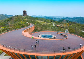 丹景山峰頂望鄉(xiāng)臺突兀于九隴隴首之上,登臨環(huán)顧,九隴岳陵逶迤如浪,群山蒼茫,湔江河谷歷歷在目。傳說古蜀先民是有隴西高原來到成都平原的拓荒者,他們常于此登高而望隴,故名望鄉(xiāng)臺。