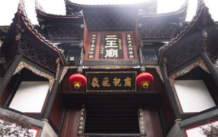 二王廟位于岷江右岸的山坡上,前臨都江堰,原為紀(jì)念蜀王的望帝祠,齊建武(494—498年)時(shí)改祀李冰父子,更名為“崇德祠”。宋代(960—1279年)以后,李冰父子相繼被皇帝敕封為王,故而后人稱之為“二王廟”。廟內(nèi)主殿分別供奉有李冰父子的塑像,并珍藏有治水名言、詩人碑刻等。建筑群分布在都江堰渠首東岸,規(guī)模宏大,布局嚴(yán)謹(jǐn),地極清幽。是廟宇和園林相結(jié)合的著名景區(qū)。占地約5萬余平方米,主建筑約1萬平方米。二王廟分東、西兩菀,東菀為園林區(qū),西菀為殿宇區(qū)。全廟為木穿逗結(jié)構(gòu)建筑,廟寺完全依靠自然地理環(huán)境,依山取勢,在建筑風(fēng)格上不強(qiáng)調(diào)中軸對稱。