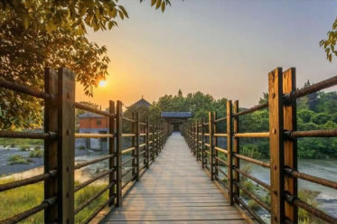 安瀾索橋又名“安瀾橋”、“夫妻橋”。位于都江堰魚嘴之上,橫跨內(nèi)外兩江,被譽(yù)為“中國古代五大橋梁”,是都江堰最具特征的景觀。始建于宋代以前,明末(17世紀(jì))毀于戰(zhàn)火。古名“珠浦橋”,宋淳化元年改“評事橋”,清嘉慶建新橋更名為“安瀾橋”。原索橋以木排石墩承托,用粗竹纜橫掛江面,上鋪木板為橋面,兩旁以竹索為欄,全長約500米,橋?yàn)殇撍骰炷翗丁?/p>