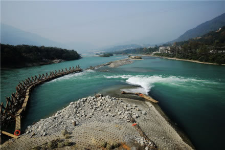 都江堰是當(dāng)今世界年代久遠(yuǎn)、唯一留存、以無壩引水為特征的宏大水利工程。它充分利用當(dāng)?shù)匚鞅备摺|南低的地理?xiàng)l件,根據(jù)江河出山口處特殊的地形、水脈、水勢,乘勢利導(dǎo),無壩引水,自流灌溉,使堤防、分水、泄洪、排沙、控流相互依存,共為體系,保證了防洪、灌溉、水運(yùn)和社會(huì)用水綜合效益的充分發(fā)揮。它最偉大之處是建堰2250多年來經(jīng)久不衰,而且發(fā)揮著愈來愈大的效益。