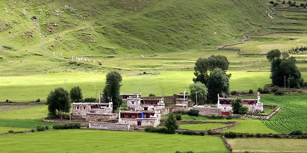 噶達強巴林惠遠寺;葸h寺,位于道孚縣協(xié)德鄉(xiāng)境內(nèi)、S303線八美至丹巴方向8公里處的山間小盆地內(nèi),海拔3600米;葸h寺的所在地實為風(fēng)水寶地,盆周的山形渾圓,多有柔和的皺折,猶如盛開的蓮花,盆地內(nèi)溪水叮咚,遠有森林牧場,近有村舍農(nóng)田,地勢平坦,風(fēng)景秀麗。解放前,惠遠寺在藏區(qū)各教派大小喇嘛寺中,是唯一一座由國家專款建造、維修、供奉香火的黃教寺廟。它曾作為七世達賴格桑嘉措的行宮,享有佛教“九龍九獅”的崇高尊號而名揚康藏,享譽中外。