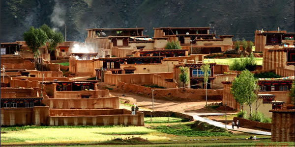 營(yíng)官藏寨:在青山腳下,綠樹環(huán)抱,小溪流徑之地,遠(yuǎn)遠(yuǎn)地便能看見屋檐下、窗戶的壁墻上勾畫著象征純潔白線的藏寨民居。一幢幢藏寨民居那么和諧地與大自然構(gòu)成一幅美麗的風(fēng)景。