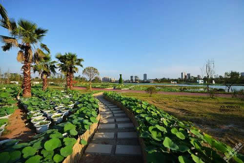 世界荷花博覽園景觀工程項目總投資8.4億元,占地面積為75公頃,其中堤內(nèi)外荷花種植198286㎡;堤內(nèi)外親水棧道6600㎡;堤外生態(tài)護坡12000㎡;堤外景觀工程185800㎡;光彩照明工程544959㎡;碼頭工程5處;環(huán)島堤帶路鋪裝49000㎡;環(huán)島堤帶路綠化8400㎡;上下閘門2座;島內(nèi)園路34000㎡;內(nèi)湖景觀橋2600㎡;景觀綠化376078㎡;古蓮水市工程4000㎡;內(nèi)湖廣場工程19524㎡;主場館工程30665㎡;停車場建設41032㎡;以及給排水、強弱電工程、島內(nèi)燃氣工程等。建設期限為18個月。