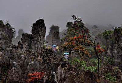 華鎣山的石柱雄壯秀拔,石生樹、樹纏石等自然景觀隨處可見,旅游區(qū)內(nèi)的植被更是枝葉繁茂、郁郁蔥蔥。經(jīng)初步估算旅游區(qū)內(nèi)的植被種類竟達(dá)304種之多。珍稀的香果樹、穗花杉等多種國家一、二級的保護植物似珍珠般的散落于旅游區(qū)。山下以松樹、杉樹為主;山上以藤蔓、稀有樹種為主;茂密的白夾竹、茨竹、方竹、灌木、喬木漫山遍野,掩映于奇特的石林之中,植被覆蓋率達(dá)95%以上的旅游區(qū)格外耀眼壯觀。而個別的罕見的植物植物學(xué)家們至今難以對它命名,從而更增加華鎣山神秘的色彩。