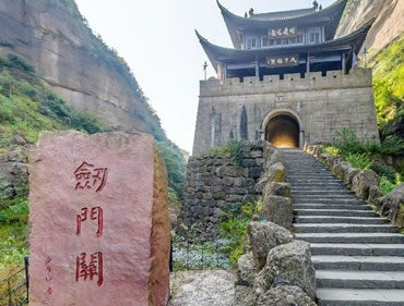 劍門關(guān)因唐代大詩人李白《蜀道難》中“劍閣崢嶸而崔嵬,一夫當(dāng)關(guān),萬夫莫開”而聞名。它集蜀道文化、三國文化、戰(zhàn)爭(zhēng)文化、紅色文化于一體。