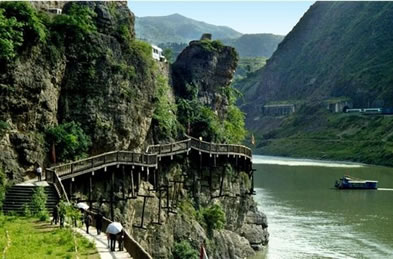 據(jù)說,三國時(shí)期,蜀丞相諸葛亮率軍伐魏,路經(jīng)大劍山,見山勢(shì)險(xiǎn)峻,便令軍士鑿山巖,架飛梁,搭棧道,助其六出祁山,北伐曹魏。雖然古棧道早已湮沒在歷史的長河,后來又重新建在山峰之上。