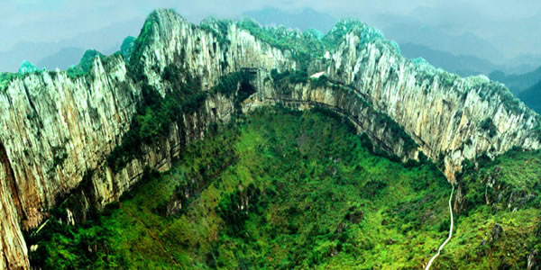 離后洞不遠(yuǎn),有一碗形洼地,為天然大漏斗(一種特定的地理現(xiàn)象),直徑650米,深208米,超過(guò)號(hào)稱世界第一的美國(guó)阿里西波大漏斗(直徑330米,深70米),堪稱世界一絕。興文天然大漏斗,被中國(guó)世界紀(jì)錄協(xié)會(huì)收錄為世界最大天然大漏斗候選世界紀(jì)錄。1935年,一名掉隊(duì)的紅軍小戰(zhàn)士,被當(dāng)?shù)胤磩?dòng)武裝俘后拋人洼心,故人們將此地一處石巖取名為紅軍巖。
