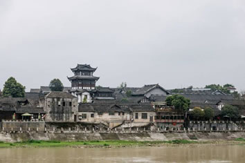 清末民初,湖廣、江西等省的商人也到此經商并建造會館,精明的元通人在江邊筑起了場鎮(zhèn)。從元通鎮(zhèn)糧站的一道大門進去,爬上一棟6層樓樓頂,從樓頂可以看到,大片青瓦屋頂,沿著文井江鱗次櫛比,臨河而居,中間一條街道穿行其中,好一派江南水鄉(xiāng)的味道。